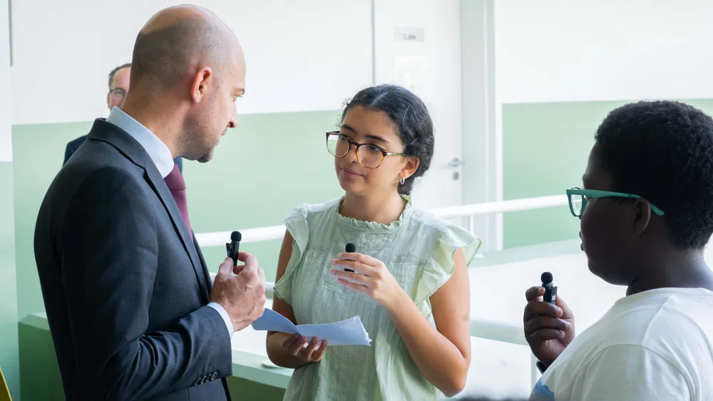 During his visit, the Minister spoke with students, met with parents, and engaged with members of the educational community.
